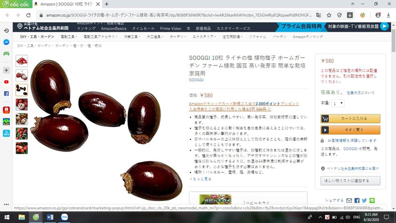 Hạt vải khô được bán trên Amazon với công dụng làm cây giống. Ảnh: THU HÀ