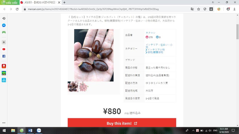 Một trang bán hàng online khác của Nhật Bản có tên Mercari, lại rao bán năm hạt vải thiều với giá 880 yên (hơn 190.000 đồng). Lý giải sự đắt đỏ này, người bán cho biết đây là hạt của loại vải rất ngọt, ngọt và ngon hơn vải đông lạnh. Do đó giá trị của chúng cũng cao đáng kể, tuy nhiên người bán không biết nguồn gốc của những hạt vải này từ đâu.