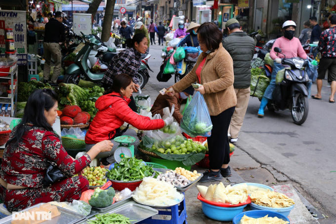 Chợ trong phố cổ Hà Nội ngày rằm tháng Chạp bán mua sôi động hơn thường lệ. Thực phẩm đủ loại, nguồn cung cấp dồi dào. Từ các món chế biến sẵn, gà cúng, cho đến các loại thực phẩm tươi sống.