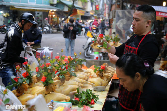 Gà cúng làm sẵn tại chợ Hàng Bè nổi tiếng từ nhiều năm nay, được bán từ 200 - 400 nghìn/con.