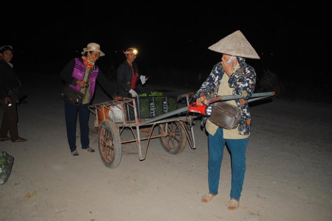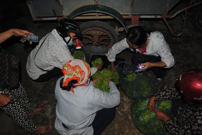 Tại đây, hàng đêm các tiểu thương khắp nơi tìm về lấy rau củ mang đi TP Vinh, Thanh Hóa và Hà Nội tiêu thụ.