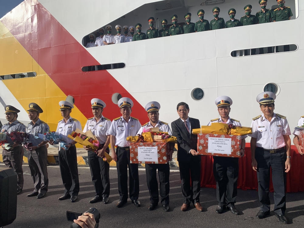 Quân cảng Cam Ranh chiều 10/1, hàng trăm CBCS Vùng 4 Hải quân cùng lãnh đạo và nhân dân tỉnh Khánh Hoà có mặt để tiễn đoàn công tác ra Trường Sa.