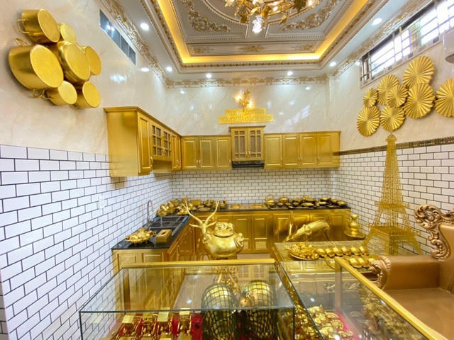 Toàn bộ vật dụng trong nhà được chủ nhân dát vàng. (Ảnh: Tiền Phong)