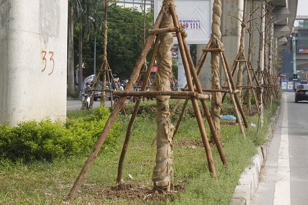 Dưới đây là một số hình ảnh hàng cây xanh mới trồng tại gầm đường sắt trên cao: