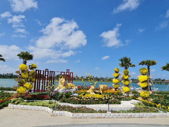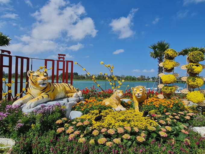 Tiểu cảnh "Gia đình Hổ" rất bắt mắt là nơi được nhiều người lựa chọn để chụp hình.
