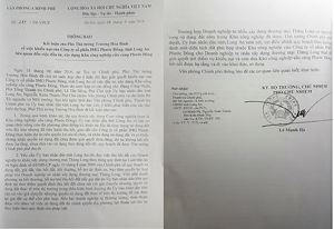 Sau khi xem xét, ngày 15/11/2012, Văn phòng Chính phủ có văn bản truyền ý kiến chỉ đạo của Phó Thủ tướng (hiện là Thủ tướng) Nguyễn Xuân Phúc: