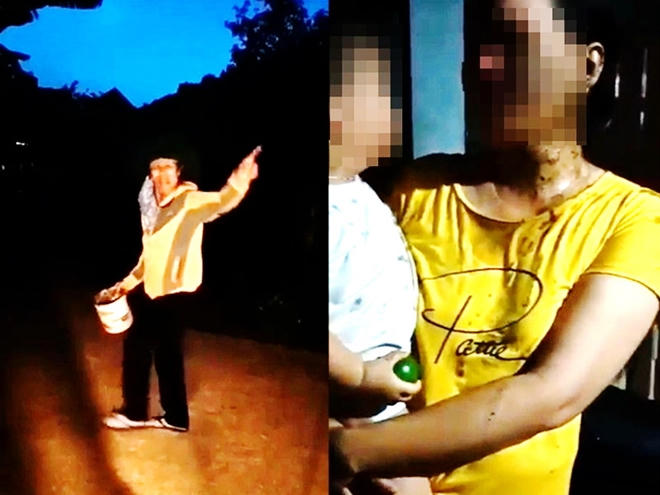 Hình ảnh nạn nhân và đối tượng tạt chất bẩn cắt từ clip người dân cung cấp. (Ảnh: báo Công an nhân dân)