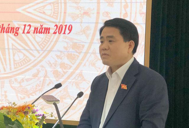 Ông Nguyễn Đức Chung - Chủ tịch UBND TP Hà Nội phát biểu tại buổi tiếp xúc cử tri