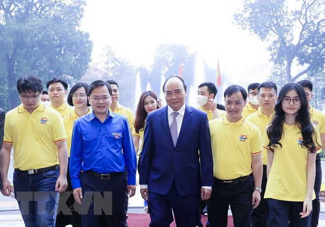 Nhân kỷ niệm 91 năm thành lập Đoàn Thanh niên Cộng sản Hồ Chí Minh, sáng 26-3, tại Phủ Chủ tịch, Chủ tịch nước Nguyễn Xuân Phúc gặp mặt các gương mặt trẻ Việt Nam tiêu biểu năm 2021.