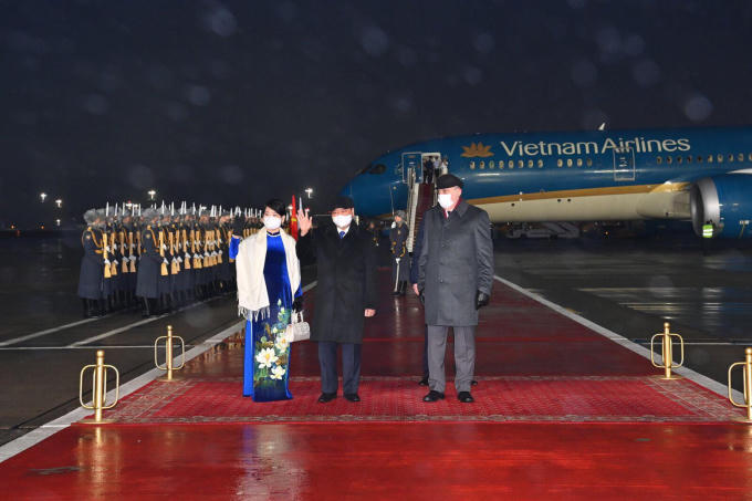 Lễ đón Chủ tịch nước Nguyễn Xuân Phúc và Phu nhân tại sân bay Vnukovo. Ảnh: Nguyễn Trung từ Liên bang Nga.
