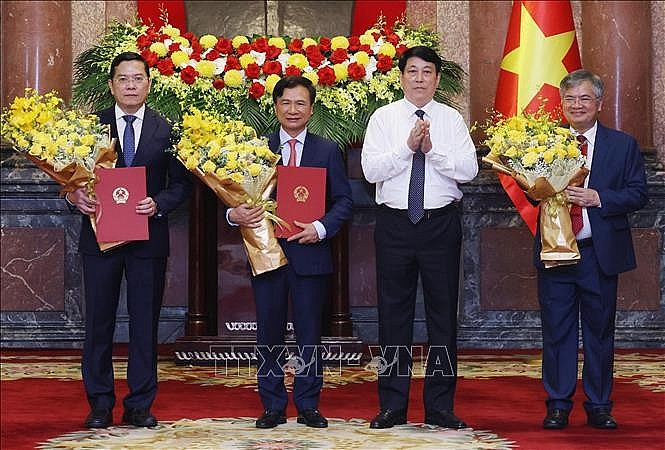 Trao quyết định và chúc mừng các đồng chí được bổ nhiệm, Chủ tịch nước Lương Cường cho biết, qua thực tế đánh giá, các đồng chí được bổ nhiệm là những cán bộ có bản lĩnh chính trị vững vàng, có phẩm chất đạo đức tốt, được đào tạo bài bản, có tư duy lý luận, có trình độ năng lực, nghiệp vụ công tác tốt.