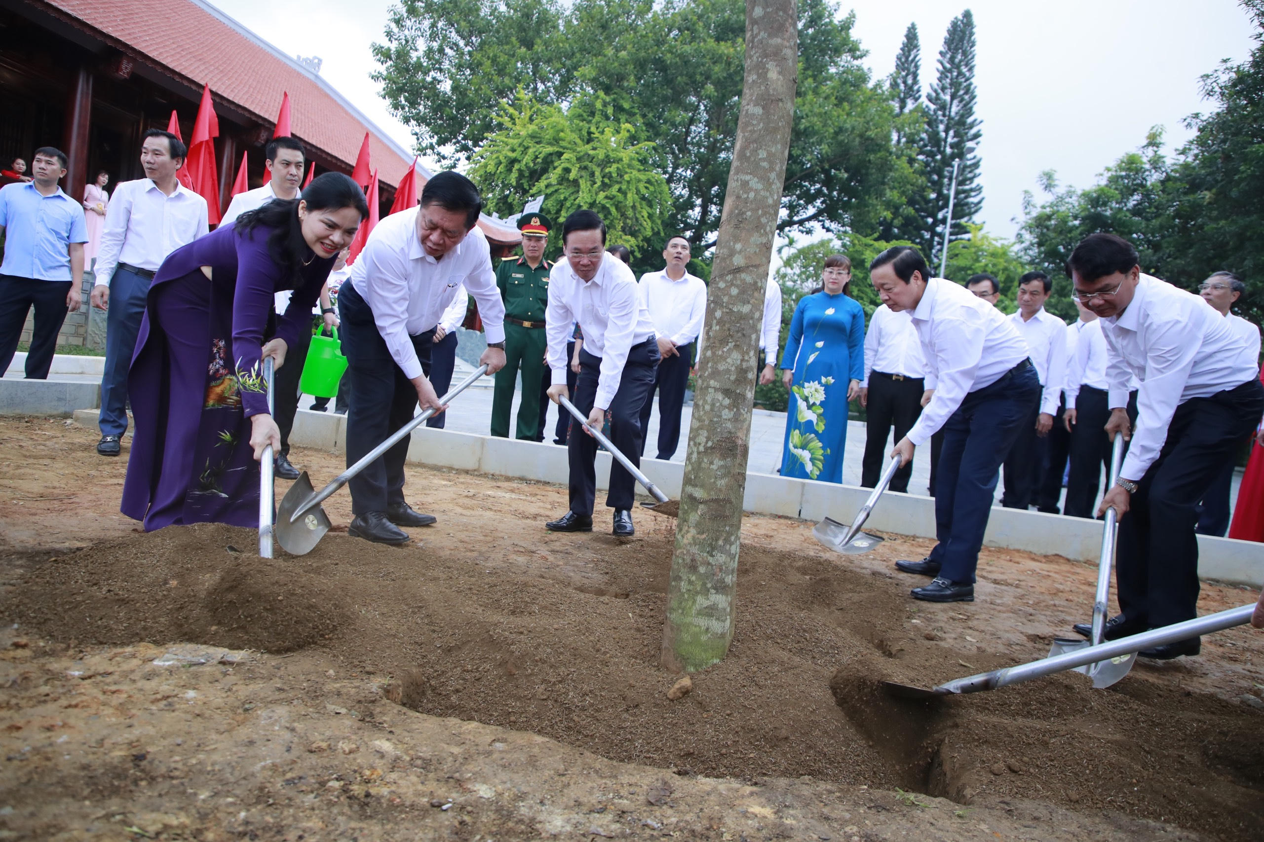 Sau lễ dâng hương, Chủ tịch nước Võ Văn Thưởng cùng đoàn đã thăm gian trưng bày và trồng cây lưu niệm tại Nhà tưởng niệm Bác Hồ./.