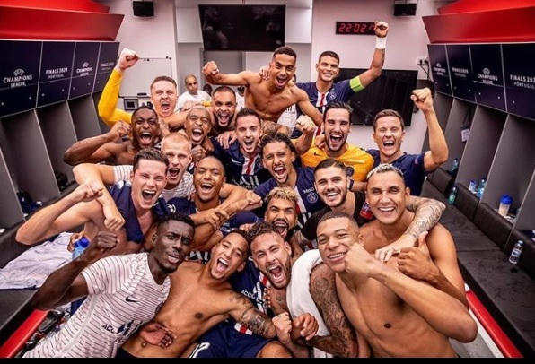 Trong khi đó, khoảnh khắc ghi lại ở hậu trường cho thấy niềm hân hoan lớn của các cầu thủ PSG. Neymar và Mbappe khoác vai ăn mừng cùng nhắn gửi: Chúng tôi chỉ còn cách 1 chiến thắng nữa là vô địch Champions League! Ở họ cháy lên niềm tin mãnh liệt.