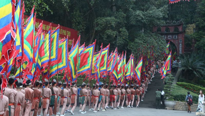 Đúng 6h, tiếng chiêng, trống vang vọng khắp núi Nghĩa Lĩnh linh thiêng. Đoàn đại biểu hành lễ từ đền tại chân núi Nghĩa Lĩnh đến Nghi môn, đền Hạ, đền Trung lên đến đền Thượng, tưởng nhớ, tri ân công đức Tổ tiên đã có công dựng nước, lập nên Nhà nước Văn Lang - Quốc gia đầu tiên trong lịch sử dân tộc Việt Nam.