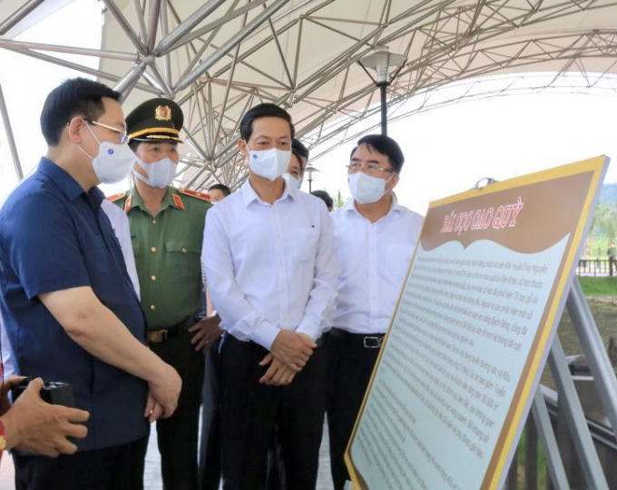 Chủ tịch Quốc hội Vương Đình Huệ cùng các đại biểu tham quan Khu bảo tồn bãi cọc Cao Quỳ