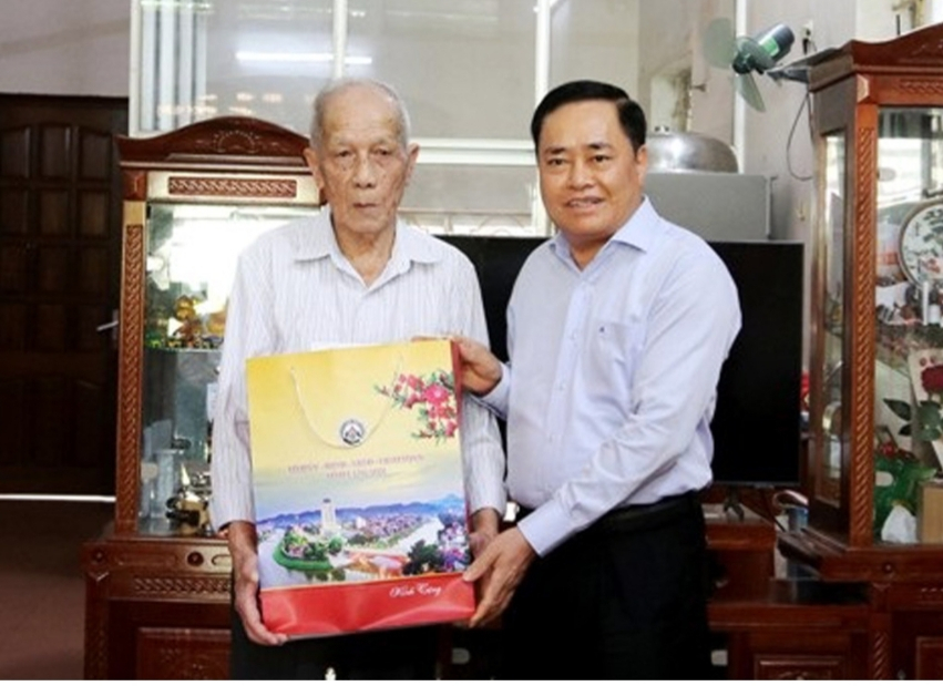 Chủ tịch UBND tỉnh thăm hỏi, tặng quà gia đình ông Hoàng Văn Sung (SN 1929, là thương binh, tại phường Đông Kinh)
