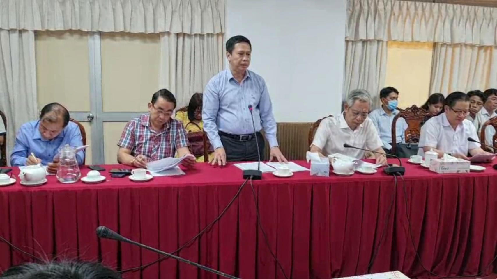 Ông Phạm Nam Huân, phó Giám đốc Sở TN&MT báo cáo tại cuộc họp.