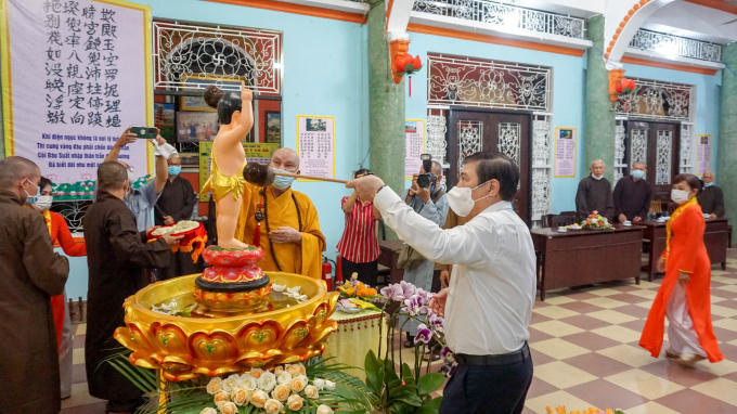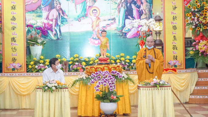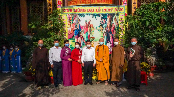 Phát biểu tại buổi thăm, ông Nguyễn Thành Phong đã có lời chúc mừng Đại lễ Phật đản đến chư tôn đức tăng ni, phật tử trên địa bàn Q.1