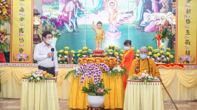 Ông Nguyễn Thành Phong mong muốn trong thời gian tới, đồng bào Phật tử tiếp tục đóng góp xây dựng thành phố, ủng hộ chính quyền thành phố phòng, chống dịch Covid-19.
