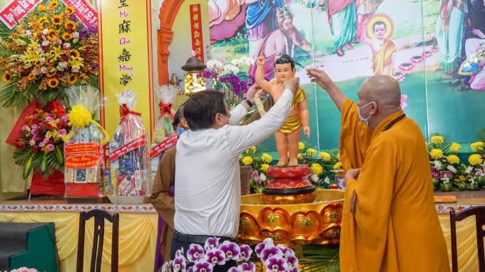 Thực hiên nghi thức tắm phật truyền thống