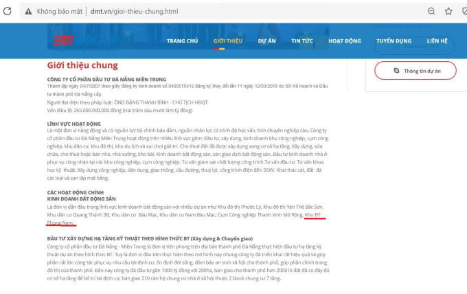 Tuy nhiên, trên trang website của Công ty CP Đầu tư Đà Nẵng - Miền Trung (DMT) có địa chỉ 484 - 486 Đường 2/9, quận Hải Châu, TP Đà Nẵng đã có banner giới thiệu chuẩn sắp mở bán dự án Khu đô thị Phong Nam.