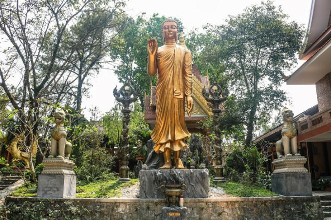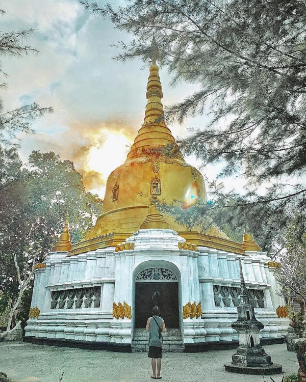 Nơi đây cảnh vật không những thanh tịnh mà còn có sức cuốn hút vô cùng mạnh mẽ. Tới đây du khách sẽ được chiêm ngưỡng ngôi bảo tháp trắng đỉnh vàng có dạng hình chuông úp cao 15m, được sáng tạo từ mẫu chùa tháp ở Thái Lan. Bảo tháp bao gồm hai tầng, tầng trên là nơi thờ tự Phật Thích Ca và chư Thánh Tăng, tầng dưới là chánh điện nơi tăng chúng và Phật tử tu tập.