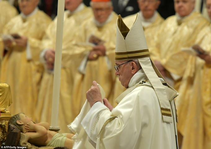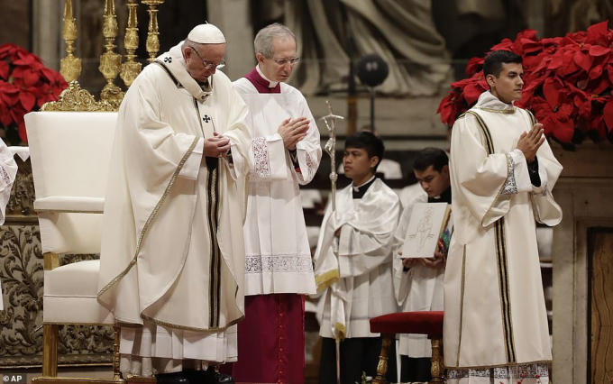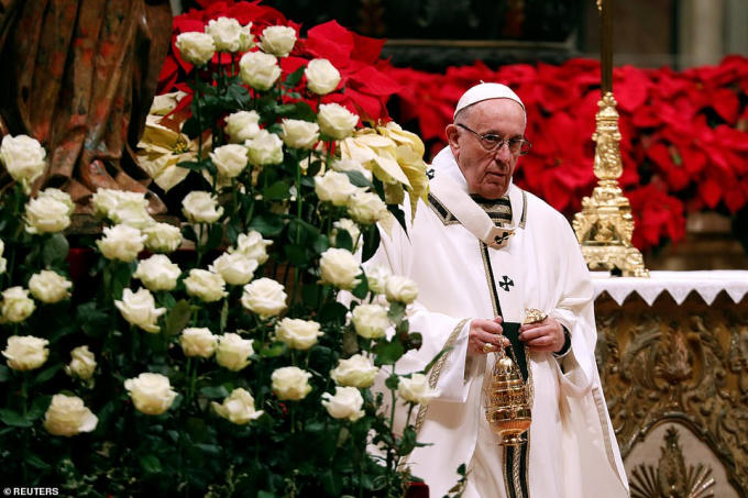 Giáo hoàng Francis đã cử hành Thánh lễ đêm Giáng sinh tại Nhà thờ Thánh Peter ở Vatican vào đêm 24/12. Buổi lễ với sự tham dự của gần 10.000 tín hữu.