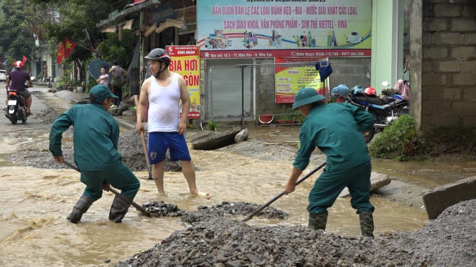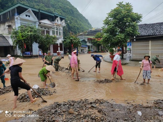 Hiện nay, các lực lượng Công an, Quân sự của huyện vẫn đang phối hợp UBND thị trấn tổ chức khơi rãnh thoát nước, đồng thời hỗ trợ các hộ gia đình dọn dẹp nhà cửa. Các ngành chức năng bố trí phương tiện, máy móc để dọn dẹp khối lượng sạt lở, đảm bảo giao thông được thông suốt.