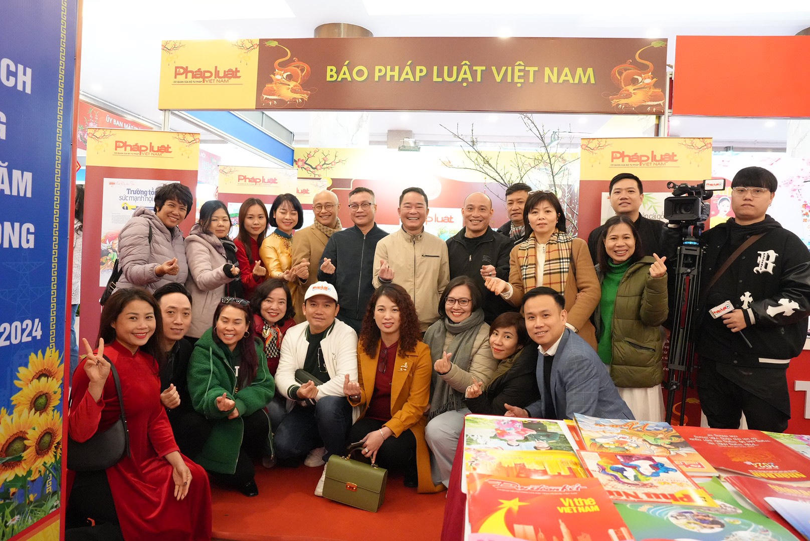 Tổng Biên tập Báo Pháp luật Việt Nam - TS. Vũ Hoài Nam chụp ảnh cùng các cán bộ, PV, BTV Báo Pháp luật Việt Nam tại gian hàng.