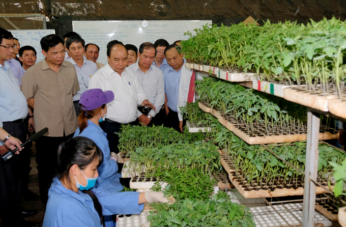 | Thủ tướng Nguyễn Xuân Phúc đã thăm trang trại sản xuất giống, khu sản xuất rau thủy canh, khu sản xuất rau an toàn đạt tiêu chuẩn Vietgap và thăm khu sơ chế sau thu hoạch của Công ty Phong Thúy tại tại Thị trấn Liên Nghĩa, huyện Đức Trọng. |