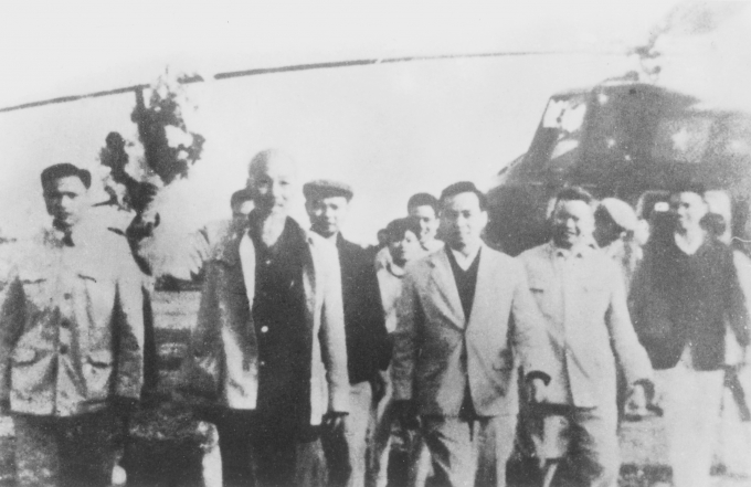 | Bác Hồ đến thăm cán bộ chiến sĩ Tiểu đoàn 5, Trung đoàn 57 tại Sầm Sơn làm nhiệm vụ bảo vệ vùng biển Tổ quốc. (Ảnh tư liệu). |