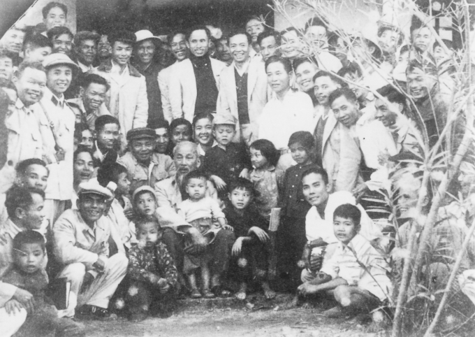 | Ngày 12-12-1961 tại Tỉnh ủy, Bác Hồ chụp ảnh lưu niệm với anh chị em Văn phòng Tỉnh ủy Thanh Hóa ,các nhà báo và các cháu thiếu niên, nhi đồng. (Ảnh tư liệu). |