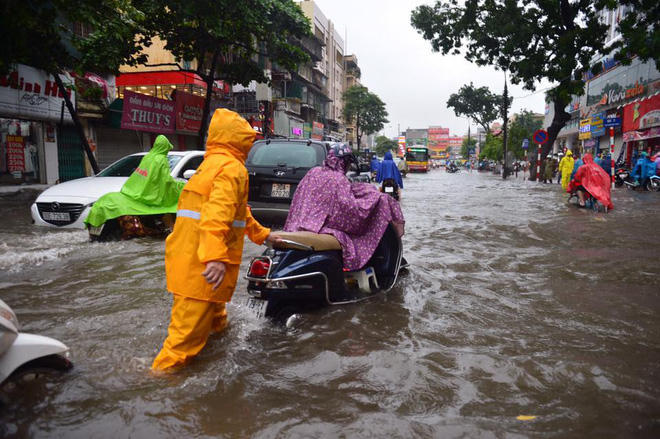 Hà Nội: Sau cơn mưa tầm tã, nhiều tuyến phố biến thành sông