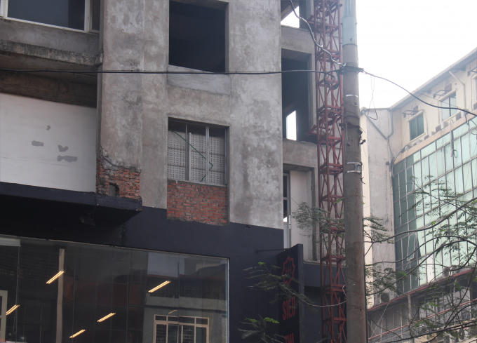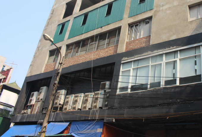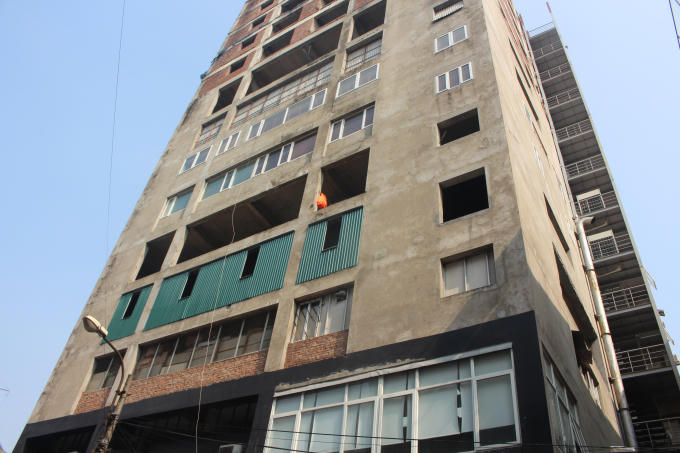 Điều đáng nói ở đây, chủ đầu tư đang sử dụng tạm bợ một số tầng đã hoàn thiện, khiến tòa nhà trở nên nhếch nhác và gây mất an toàn khi mà các tầng trên vẫn dang dở. Bên cạnh đó, phía bên hông tòa nhà, các tầng hầm được sử dụng làm bãi trông giữ xe với lượng người ra vào liên tục.