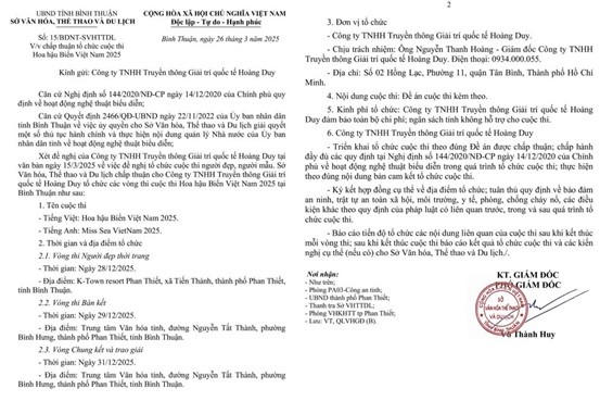 Mới đây, Sở Văn hóa, Thể thao và Du lịch (VHTT&DL) tỉnh Bình Thuận đã có văn bản chấp thuận về việc tổ chức cuộc thi "Hoa hậu Biển Việt Nam 2025".
