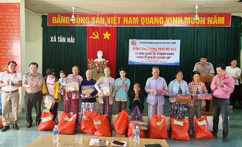 Những năm qua, các cơ quan THADS tỉnh Ninh Thuận đã tích cực hưởng ứng bằng những việc làm cụ thể, thiết thực như: đóng góp ủng hộ Quỹ “Vì người nghèo”; “Mái ấm Công đoàn”, “Chương trình xây dựng nông thôn mới”; tổ chức chương trình trao, tặng quà cho bà con nhân dân có hoàn cảnh khó khăn trên địa bàn các xã. Ngoài ra, nhằm sẻ chia với khó khăn của một bộ phận nhân dân chịu ảnh hưởng của dịch bệnh Covid-19 và đặc biệt là diễn biến thời tiết khắc nghiệt, tình hình khô hạn kéo dài trên diện rộng, toàn thể công chức các Cơ quan THADS đã tự nguyện đóng góp 1 ngày lương để mua những phần quà gửi đến những gia đình có hoàn cảnh khó khăn với tổng giá trị các phần quà là 23 triệu đồng.