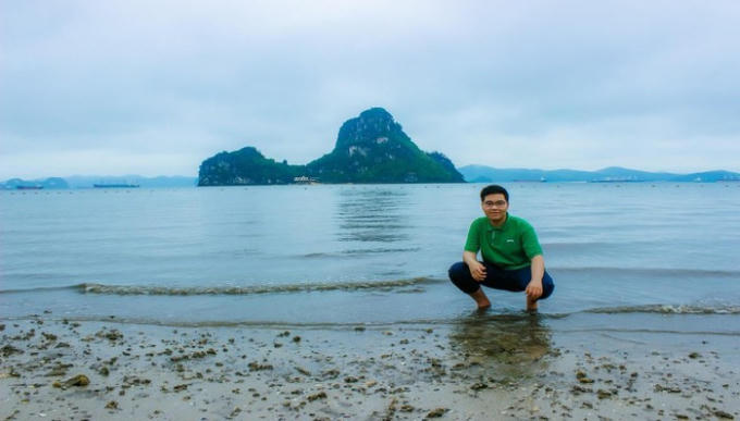 Tác giả Hoàng Đặng Hải Phong (Trường THPT chuyên Hà Nội- Amsterdam) trong chuyến đi thực tế biển tại Đảo Khỉ - Quảng Ninh.