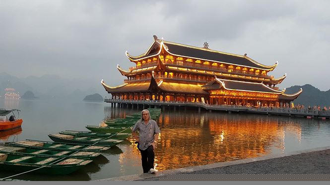 Chay! Tôi nhấm nháp lâu hơn vị thịt quay mô phỏng món chay. Rồi một khẩu giò lụa… Thấy cũng xuôi xuôi, đường được như những lần mình được can dự. Bồi hồi dậy lên cảm giác kính phục lẫn nể ngại với một yếu nhân từng khổ ải bao ngày đêm cất dựng nên chùa cùng quần thể tôn giáo Bái Đính và bây giờ đang tất tả ngày đêm với việc xây cất cơ ngơi Tam Chúc, ông chủ sự Nguyễn Văn Trường.