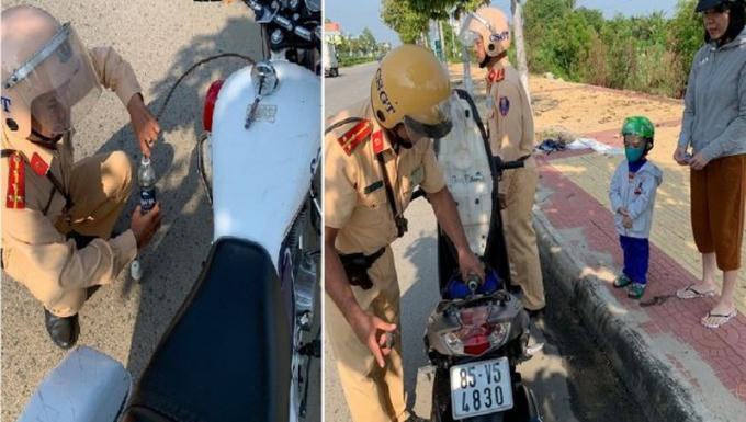 Gần đây, mạng xã hội lan truyền hình ảnh cảnh sát giao thông (CSGT) dùng ống nhựa hút xăng từ xe công vụ vào chai nhựa đổ vào xe máy của một phụ nữ. Chị này đứng trên vỉa hè, bên cạnh là bé trai, cả hai chăm chú quan sát cử chỉ của chú cảnh sát...