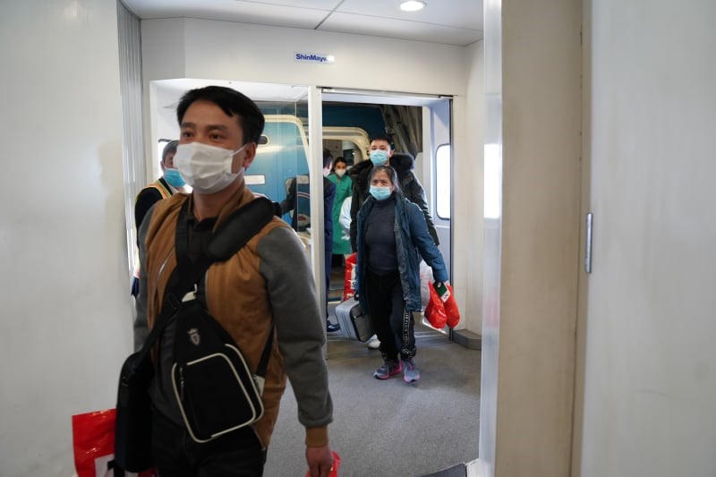 Những công dân đầu tiên đặt chân xuống sân bay Nội Bài. Ảnh ĐT