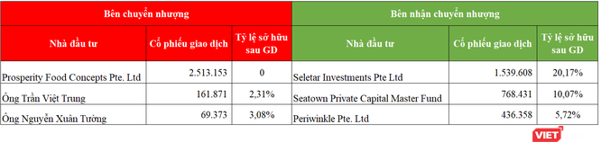 Theo đó, các nhà đầu tư ngoại là Seletar Investments Pte Ltd (một quỹ đầu tư có quan hệ mật thiết với Temasek Holdings), Seatown Private Capital Master Fund và Periwinkle Pte. Ltd sẽ mua tổng cộng 2,74 triệu cổ phần - tương ứng với 35,95% vốn điều lệ Golden Gate - từ Prosperity Food Concepts Pte. Ltd, ông Trần Việt Trung và ông Nguyễn Xuân Tường.
