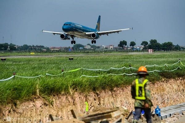 Công trường cải tạo đường băng sân bay Nội Bài, tháng 7/2021. Ảnh: Giang Huy
