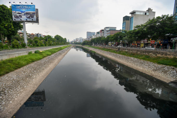 Sông Tô Lịch đổi màu đen kịt sau những ngày trong xanh