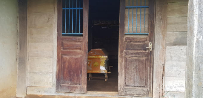 Cỗ quan tài nằm trong nhà trên đất bà Bê mua.