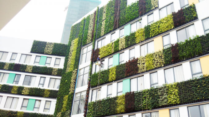 Cảnh quan cải thiện bầu không khí đang ô nhiễm cũng như góp phần định hình giá trị của dự án (Ảnh: Tường xanh Bệnh viện Vinmec).