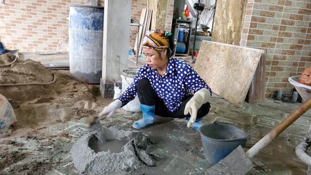 Chị Thuý đã có thâm miên 12 năm trong nghề làm phụ hồ