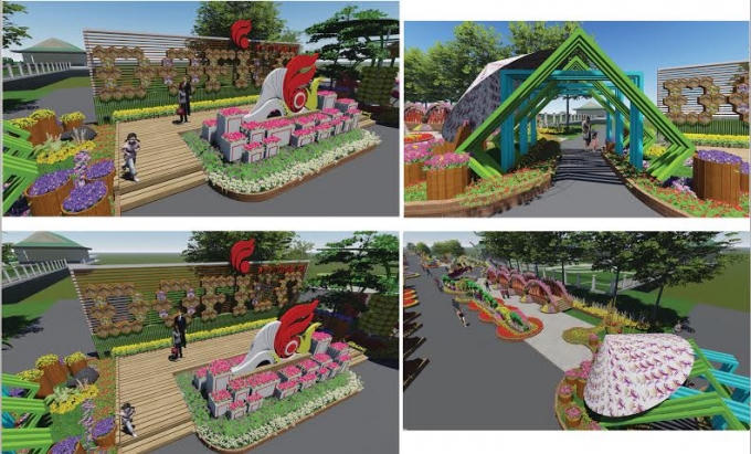 Theo đó, không gian thiết kế đường hoa được chia thành 3 khu vực với 27 phối cảnh, trải dài trên đoạn đường 1,6 km trong khuôn viên Văn Miếu, Đồng Nai. Các mô hình, tiểu cảnh được xây dựng từ 36.000 cây, chậu hoa kết hợp hài hòa ánh sáng và màu sắc.