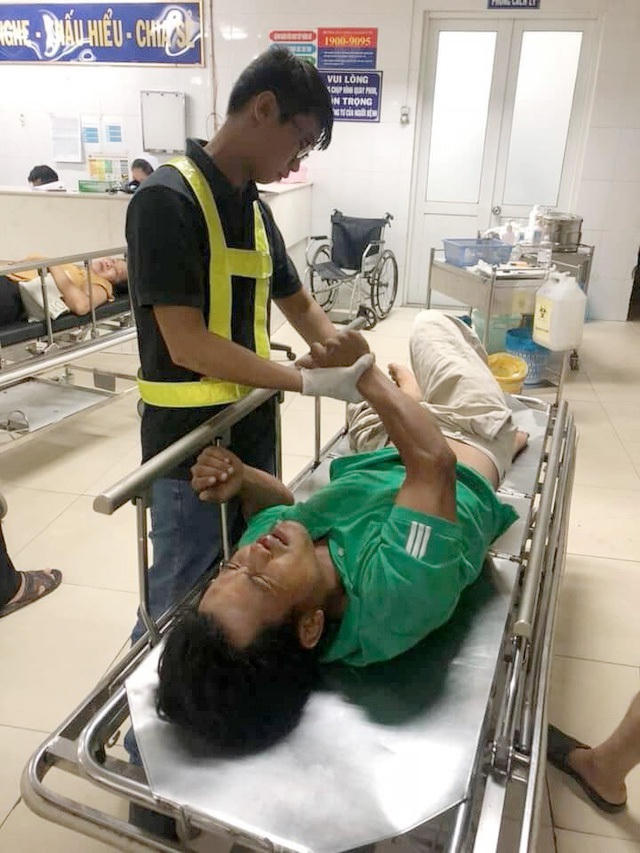Nạn nhân bị ô tô 4 chỗ cán qua chân, mất máu rất nhiều trên sàn xe. Từng là người rất sợ máu nhưng từ khi hỗ trợ xong trường hợp này, Tuấn kể không còn thấy sợ máu nữa.