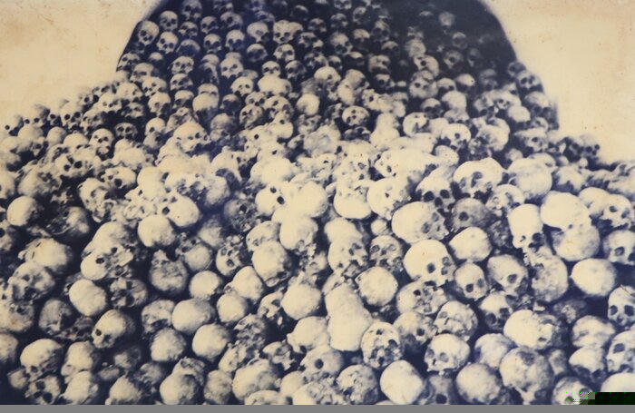 Trên tường, nơi khách thắp hương treo những hình ảnh quy tập xương cốt đồng bào do cố nghệ sĩ nhiếp ảnh Võ An Ninh ghi lại. Đây là thân hình xác xơ vì đói, nhìn không ra đàn ông hay đàn bà; kia là chồng chất xương sọ được xếp lại trong hầm đem chôn mà người yếu bóng vía sẽ không dám ngắm.