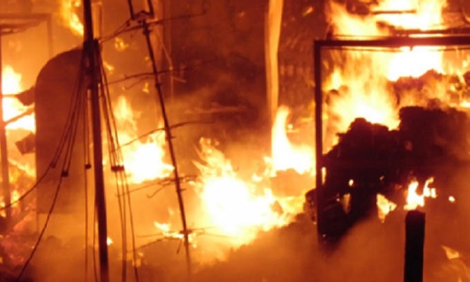Chợ Thị xã Thái Hòa cháy giữa đêm, hàng chục ki-ốt bị thiêu rụi. Nguồn: Facebooker Âu Xuân Khánh.